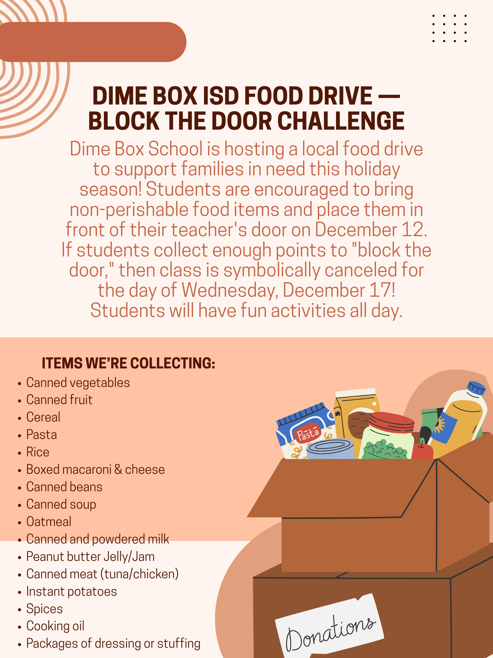 Each item brought will earn points. Work together to stack up enough points to block your teacher’s door!